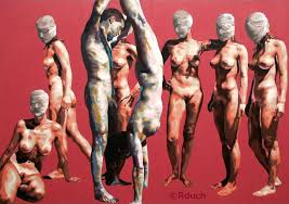 As a witness of his time, the artist tries to put into pictures the evils and alienation caused by the violence of modern civilizations. Through excessive and impossible poses, through bruises and injuries, he portrays a humanity that seems to have returned to its original instincts.