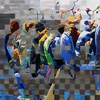 CSABA FAZAKAS ist ein intellektueller Künstler mit experimentellem Temperament, der bewusst auf Avantgarde-Traditionen des 20. Jahrhunderts zurückgreift. Nach seinen frühen Kunstexperimenten - nebst Installationen und „Performances“ – widmet er sich hier der Tafelmalerei. Seine Kunst zeichnet sich durch Sensibilität für individuelle und soziale Probleme aus. Gleichzeitig durch eine besondere Zeitlosigkeit und Universalität.